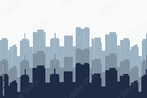 Fototapeta premium Abstract City Silhouette with Blue Lines Background Illustration