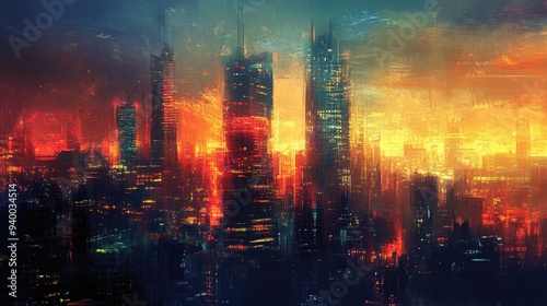 © -Quantum Pixels-, Naklejka premium abstract city skyline