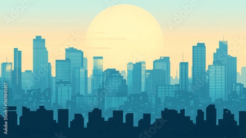 Naklejka premium Abstract City Skyline at Sunrise with Haze