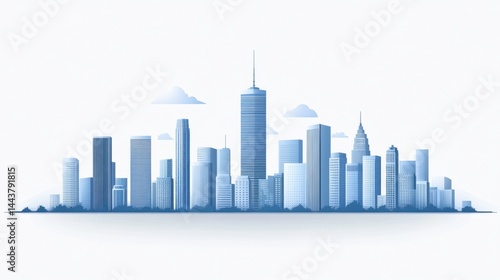 © khonkangrua, Obraz premium Abstract City Skyline in Blue Tones with Clouds and Minimalist Style