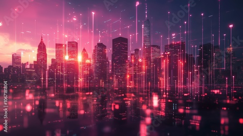 Fototapeta premium Abstract City Skyline with Financial Symbols