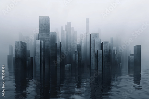 Fototapeta premium Abstract cityscape concept with buildings on dark water.