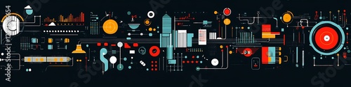 © MASJAB, Obraz premium Abstract Cityscape Data Network Visualization Design