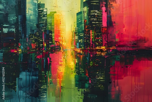 © TEN.POD, Naklejka premium Abstract Cityscape Painting.