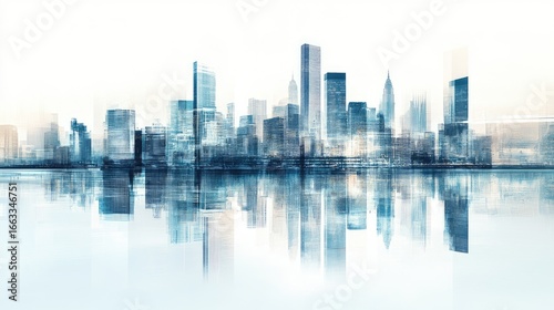 © phianguma, Fototapeta premium Abstract Cityscape Reflection with Blurred Skyline and Calm Waters
