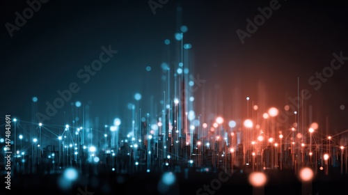 Naklejka premium Abstract cityscape silhouette featuring glowing connection nodes, embodying a...