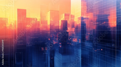 Obraz premium Abstract Cityscape Sunset Grid Background