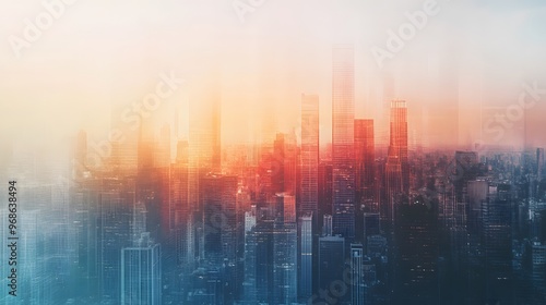 © sungedi, Fototapeta premium Abstract Cityscape with a Hazy Sunset Sky