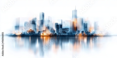 © Pojjanee, Fototapeta premium Abstract Cityscape with Blurred Buildings and Reflections in Soft Light