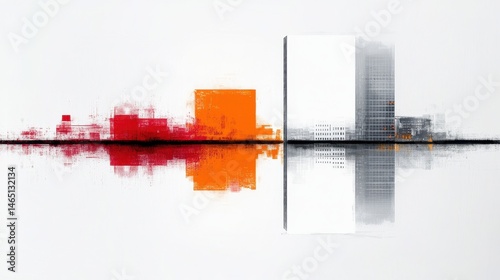 © dnx, Fototapeta premium Abstract cityscape with colorful reflections in water, showcasing modern architecture