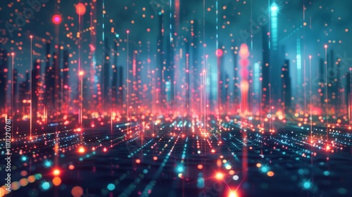 Obraz premium Abstract Cityscape with Digital Network