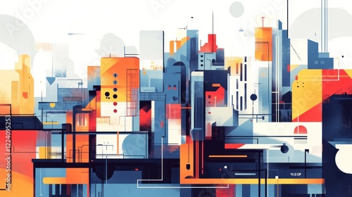 Obraz premium Abstract cityscape with geometric shapes and vibrant colors.