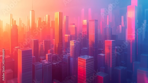 © Malika, Fototapeta premium Abstract Cityscape with Vibrant Colors and Modern Design