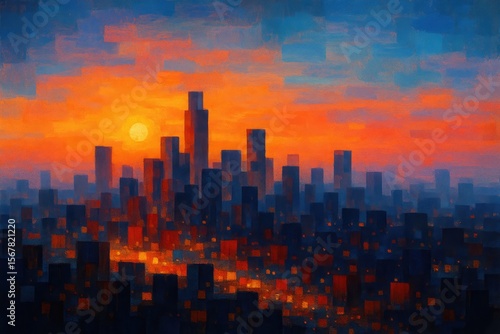 © AkuAku, Fototapeta premium Abstract cityscapes during sunrise