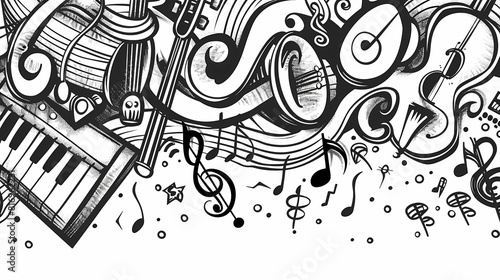 Obraz premium Abstract Classical music hand drawn doodle banner cartoon vector image