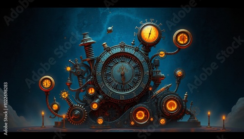 © Hirzan, Obraz premium Abstract Clockwork Mechanism