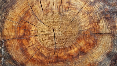 © pinporn manosri, Naklejka premium Abstract close-up of a rough-cut wooden board with visible saw marks and natural grain patterns.