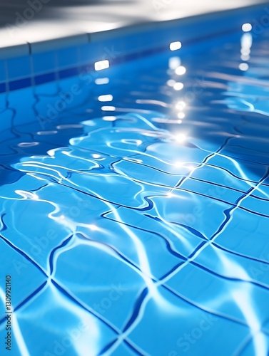 Fototapeta premium Abstract close-up of serene swimming pool water reflections and tiles