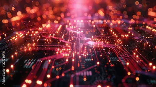 Obraz premium Abstract close-up view of a vibrant circuit board with glowing lights and intricate patterns