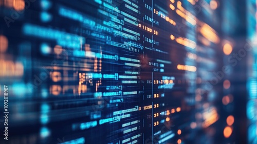 Obraz premium Abstract closeup of digital code and data streams with neon lighting