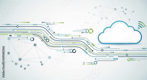 Obraz premium Abstract Cloud Computing Network Flowchart with Streamlined Lines
