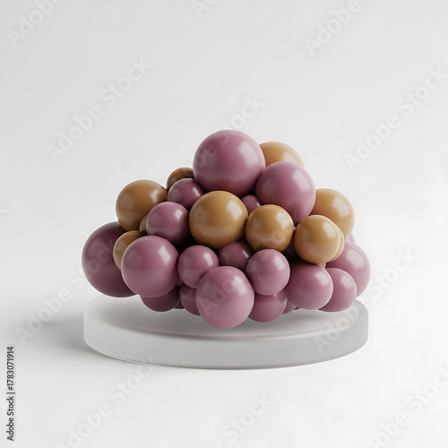 © S-DESIGN, Fototapeta premium Abstract cluster of pink and brown glossy spheres on a pedestal. Modern 3d render with a minimalist design on a white background