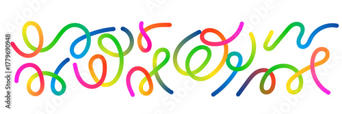 © Naeem, Fototapeta premium Abstract Color Gradient Lines Pattern. Vector Wave 3D Graphic Shapes with Gradient. Organic Rainbow Wavy Ribbons. Set of Fun Kid Doodle Colour Gradation Lines.