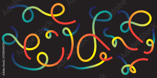 Naklejka premium Abstract Color Line Shape Graphics. Vector Gradient Line Pattern Design. 3D Modern Backgrounds with Rainbow Colored Ribbon Waves.