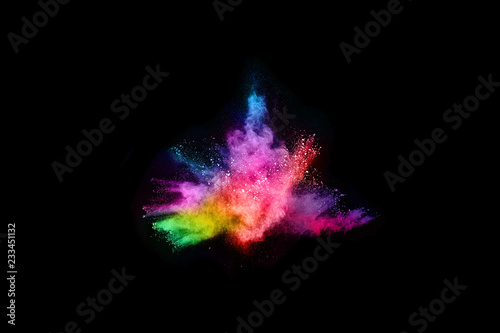© kitsana, Fototapeta premium abstract colored dust explosion on a black background.abstract powder splatted background,Freeze motion of color powder exploding/throwing color powder, multicolored glitter texture.