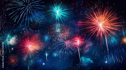 © Darwin Vectorian, Naklejka premium Abstract colored firework background with free space for text