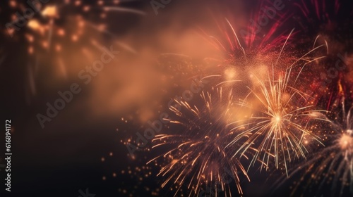© Diffin, Fototapeta premium Abstract colored firework background with free space for text. Bright fireworks. Background festive night fireworks in the sky. generative ai