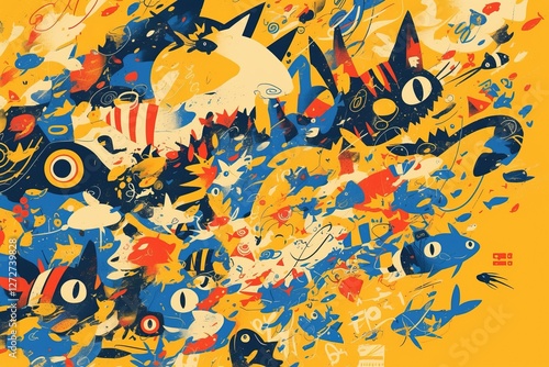 © San, Naklejka premium Abstract colorful animals and fish explosion