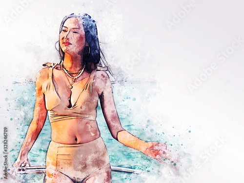 Obraz premium Abstract colorful beautiful woman sexy bikini on watercolor illustration...