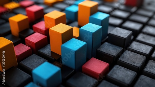 © Tri, Obraz premium Abstract Colorful Blocks 3D Render: Data Visualization, Geometric Shapes, Modern Art