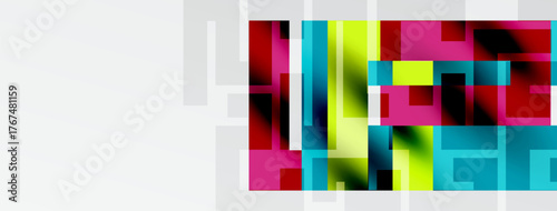 © antishock, Fototapeta premium Abstract colorful blocks dominate image. Rectangles overlap, creating vibrant visual texture. White space provides contrast.