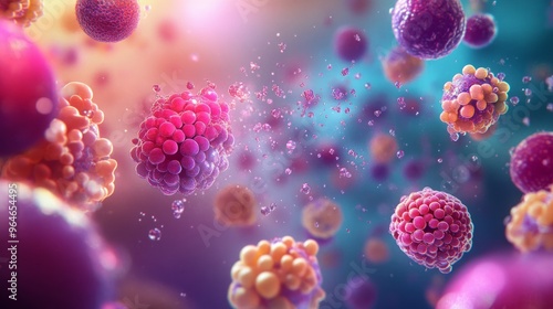 © Jakkarin, Fototapeta premium Abstract Colorful Cells in Motion