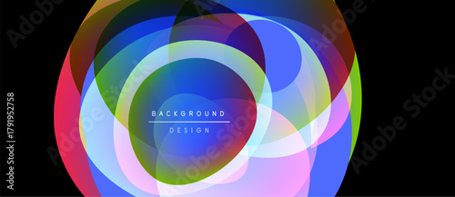 Obraz premium Abstract colorful circles overlap creating dynamic visual effect. Text reads background design centered within composition.