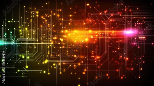 Fototapeta premium Abstract Colorful Circuit Board Background with Lights and Patterns