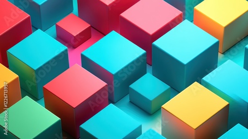 © huhu, Obraz premium Abstract colorful cubes background.