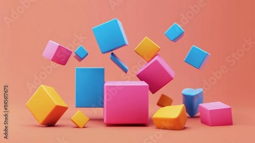 © Aulia, Obraz premium Abstract Colorful Cubes 3D Render Floating in Space