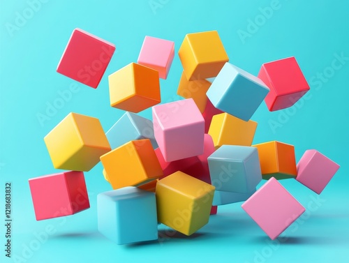 © Raghav Rocks, Obraz premium Abstract colorful cubes, geometric design, 3d render, Generative AI