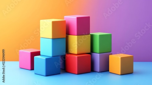 © Usha, Obraz premium Abstract colorful cubes, geometric design, 3d render, Generative AI