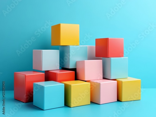 © Lens Harbor, Obraz premium Abstract colorful cubes, geometric design, 3d render, Generative AI