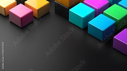 Obraz premium Abstract Colorful Cubes on Black Background 3D Render