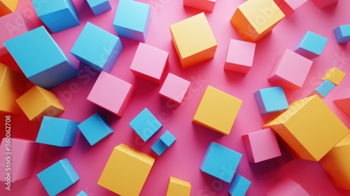 © aulia, Obraz premium Abstract Colorful Cubes Pink Background 3D Render