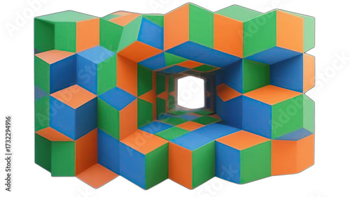 © Qannie, Obraz premium Abstract colorful 3D cubes building a business concept puzzle block design