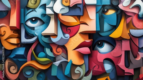 © Nucharee, Fototapeta premium Abstract colorful faces, geometric art.
