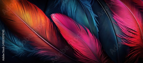 Fototapeta premium Abstract, colorful feather wallpaper on a dark background