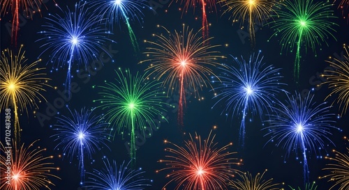 © Panisa Kanthaphan, Naklejka premium Abstract colorful fireworks seamless pattern background design