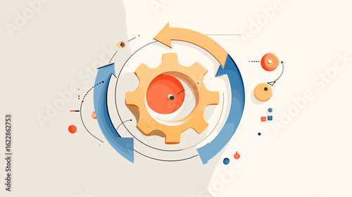 Fototapeta premium Abstract colorful gear with arrows and circular design elements